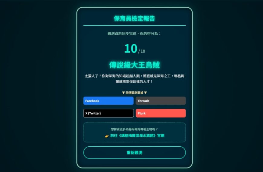 你是具足蟲小弟?還是傳說中的大王烏賊?分享「瑪格梅爾深海水族館深海檢定」抽基隆海科館門票