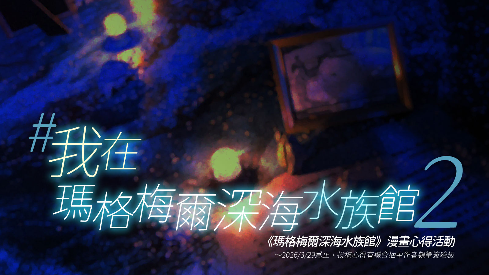 - 寫下青空文化出版《瑪格梅爾深海水族館》繁體中文漫畫版至少200字心得,公開在FB、IG、推特、噗浪、或是個人BLOG等任一公開平台上。